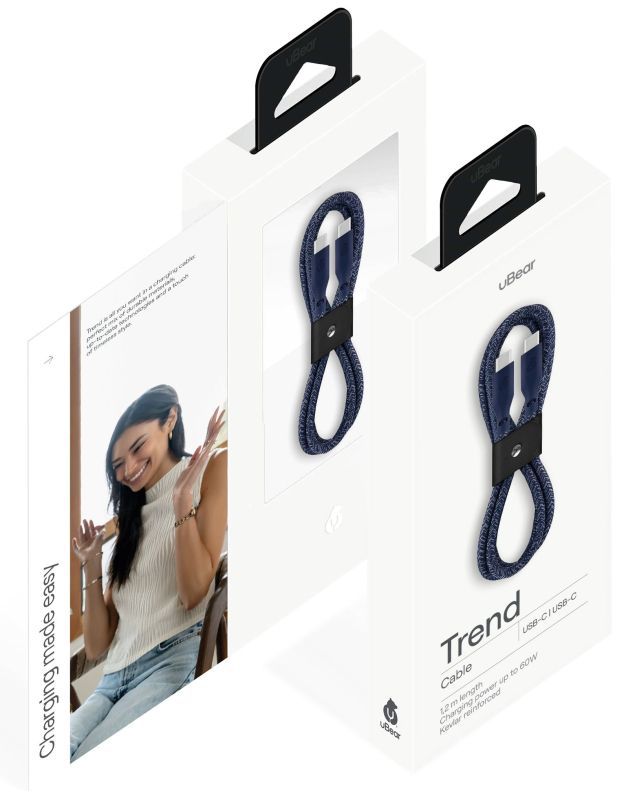 Кабель зарядный uBear Trend Cable USB-C/USB-C 1.2м, 60W, синий